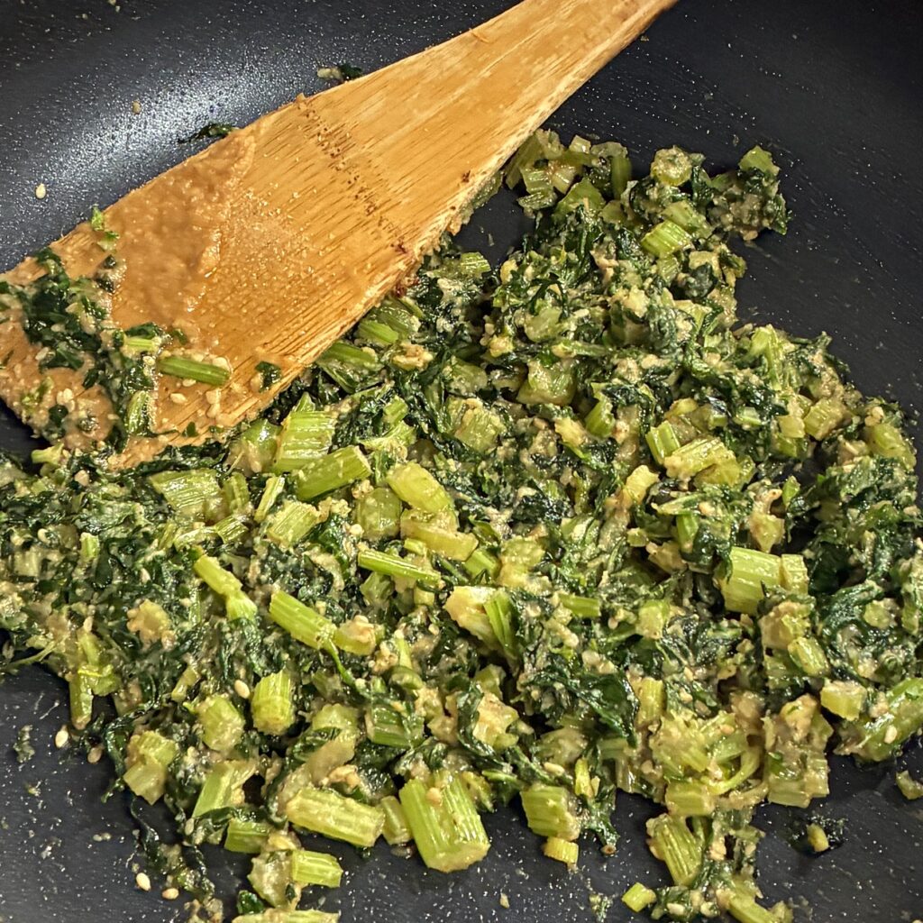 ③最後に白すり胡麻を入れ炙りながら全体にからめて完成!