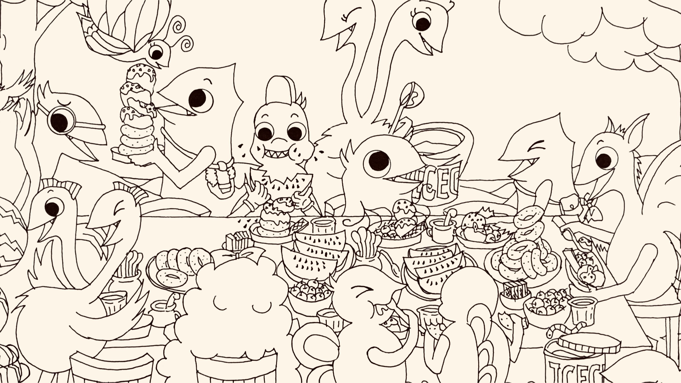 夏に描いたものなので、🍉がいっぱい^^